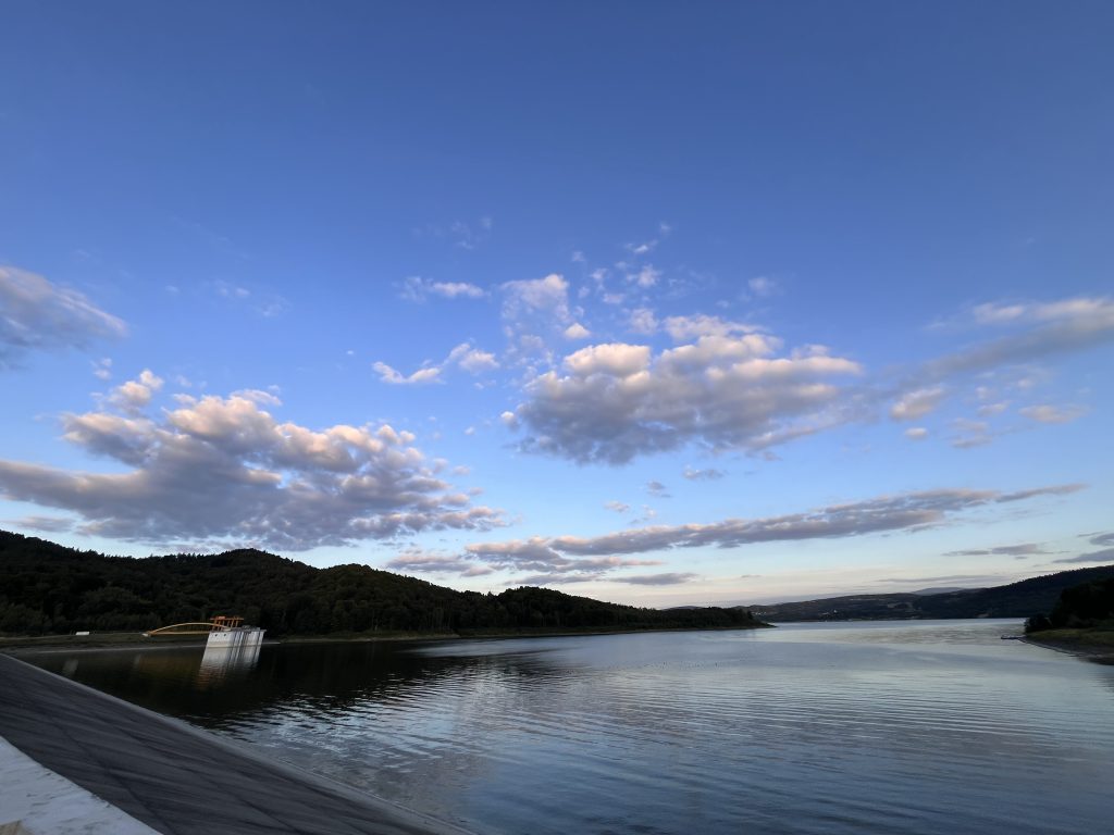 Widok na Jezioro Mucharskie i zaporę w Świnnej Porębie, w pobliżu pensjonatu